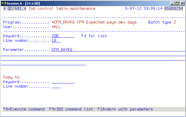 - The sequence value is automatically assigned by the program based on the entered keyword, but can be resequenced on the Job control table maintenance detail panel by clicking Resequence line number. It may also be left blank if no resequencing is needed.