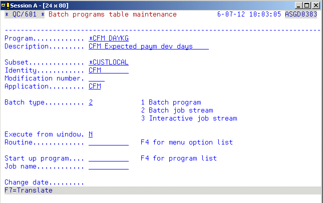 - Enter the batch job stream name, i.e. *CFM_DAYKG.