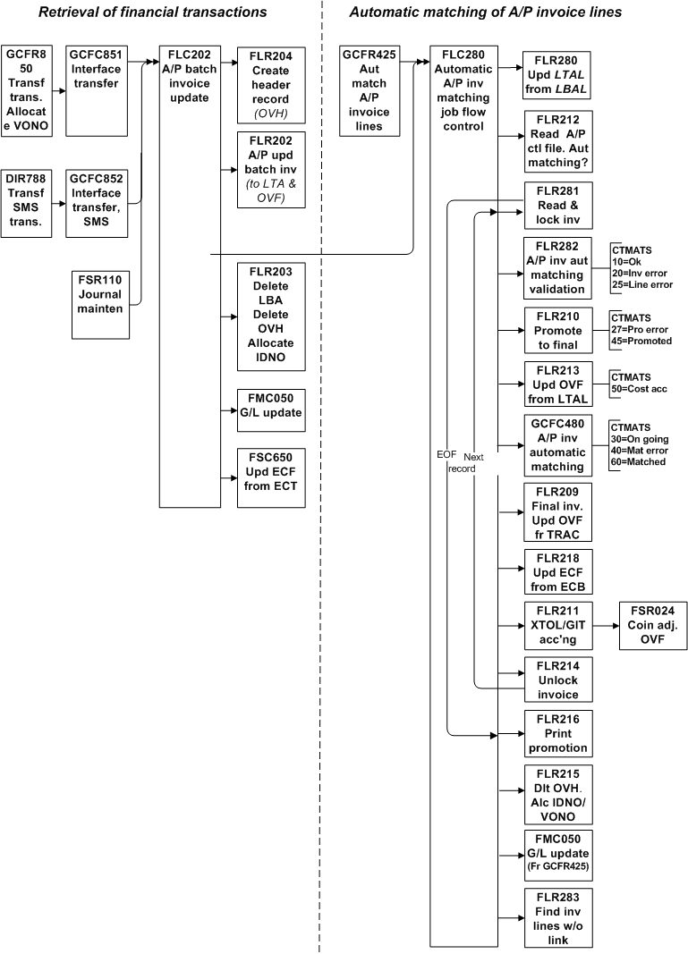 This flowchart illustrates the system process when manually matching preliminary and final A/P invoices.
