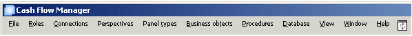The application Cash Flow Manager (CFM) consists of the following components that you should familiarise yourself with to more easily navigate and customise the environment that is suitable for your CFM role.