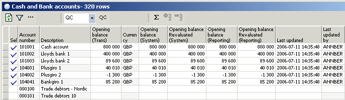 Tip: If you click the Show groupings icon the system will summarise the opening balance for all selected accounts. The summarised currency values equal the opening balance displayed in the various Cash flow forecasts.