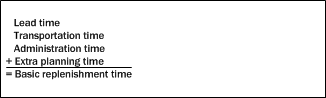 The basic replenishment time is used as a “base” for calculating the actual replenishment time for purchase type 2 and purchase type 3 items: