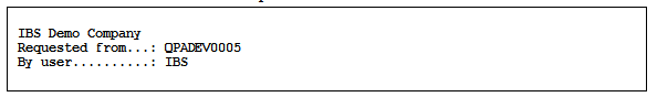 On the first line (IBS Demo Company), the layout code 02 is used. Layout code 02 retrieves the Company name from the System company control file.